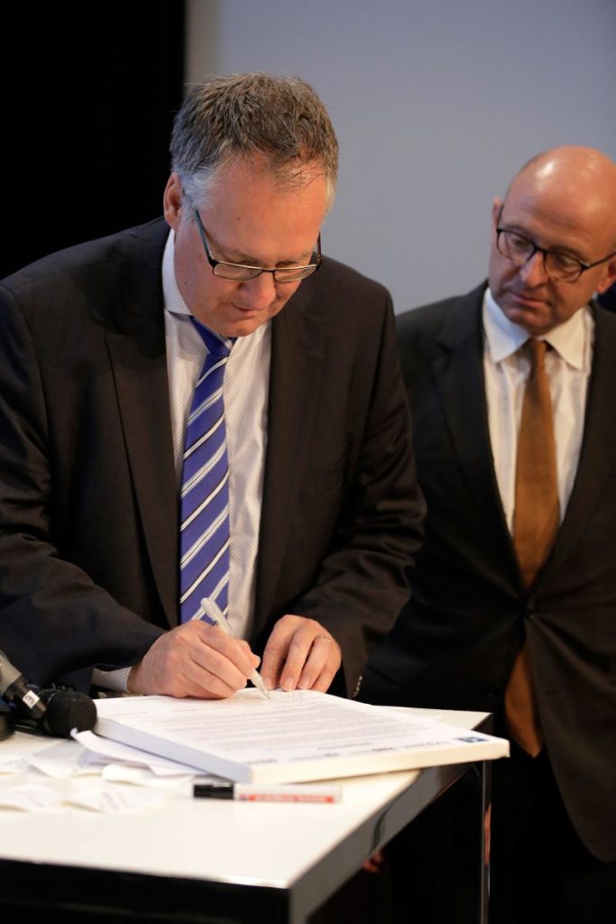 Tijdens het congres Gas Meets Wind tekenden NWEA’s Hans Timmers en Jo Peters van NOGEPA samen met de genoemde partijen het manifest “Coördinatie en Samenwerking in de Noordzeeregio”. In dat manifest spreken ze af te onderzoeken of er gebruik kan worden gemaakt van elkaars kennis, ervaring en activiteiten. Bijvoorbeeld op het gebied van geologie en ecologie maar ook waar het gaat om logistieke aspecten, over veiligheid en over onderhoud.